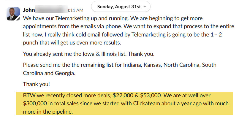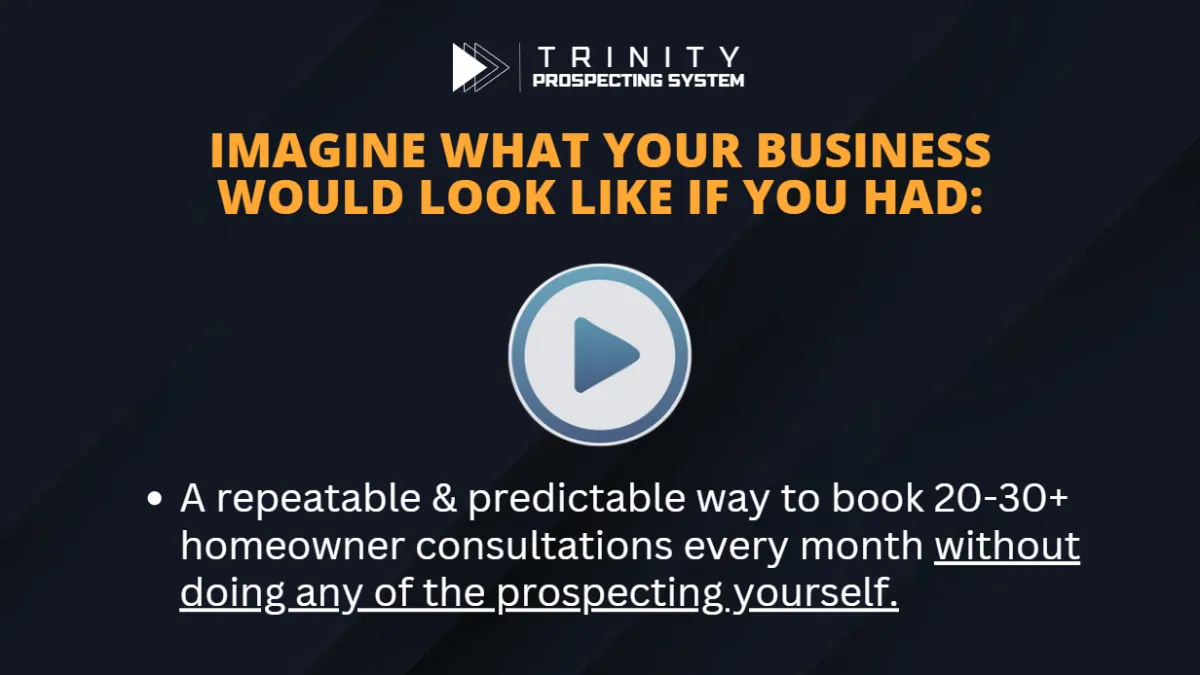 The Trinity Prospecting System and ClickATeam are a sales and marketing education and training company. We do not sell a business opportunity, “get rich quick” program or money-making system. Although this is a 100% done-for-you system, we believe, with education, individuals can be better prepared to make investment decisions, but we do not guarantee success in our training. We do not make earnings claims, efforts claims, or claims that our training will make you any money. All material is intellectual property and protected by copyright. Any duplication, reproduction, or distribution is strictly prohibited.